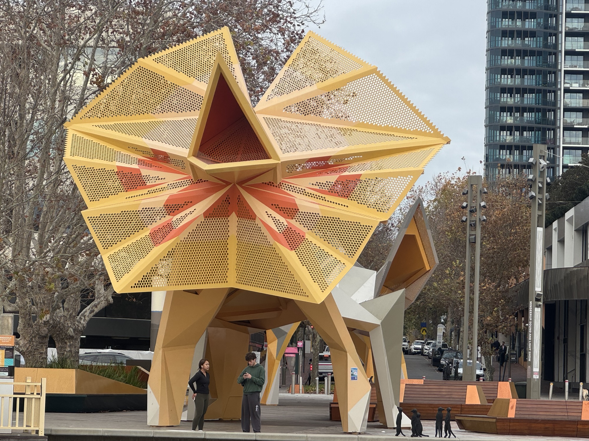 Today we decided to walk and walk and walk. So we set off towards East Perth, walking through parks and gardens and beside the river, through Point Fraser and beside wetlands. Then we walked across the river, along one of the many fantastic walking paths and looped back around before picking up one of the trails from the Perth Trails app. This is a really handy little app, with suggested walks and things to see, so we followed the Claisebrook Cove route, before looping back into the city and picking up the Art City trail, to see some more of the public art that’s placed all around the city. We ended up doing a 7km walk, so here’s some of the sights and scenes of our loops around the city of Perth…